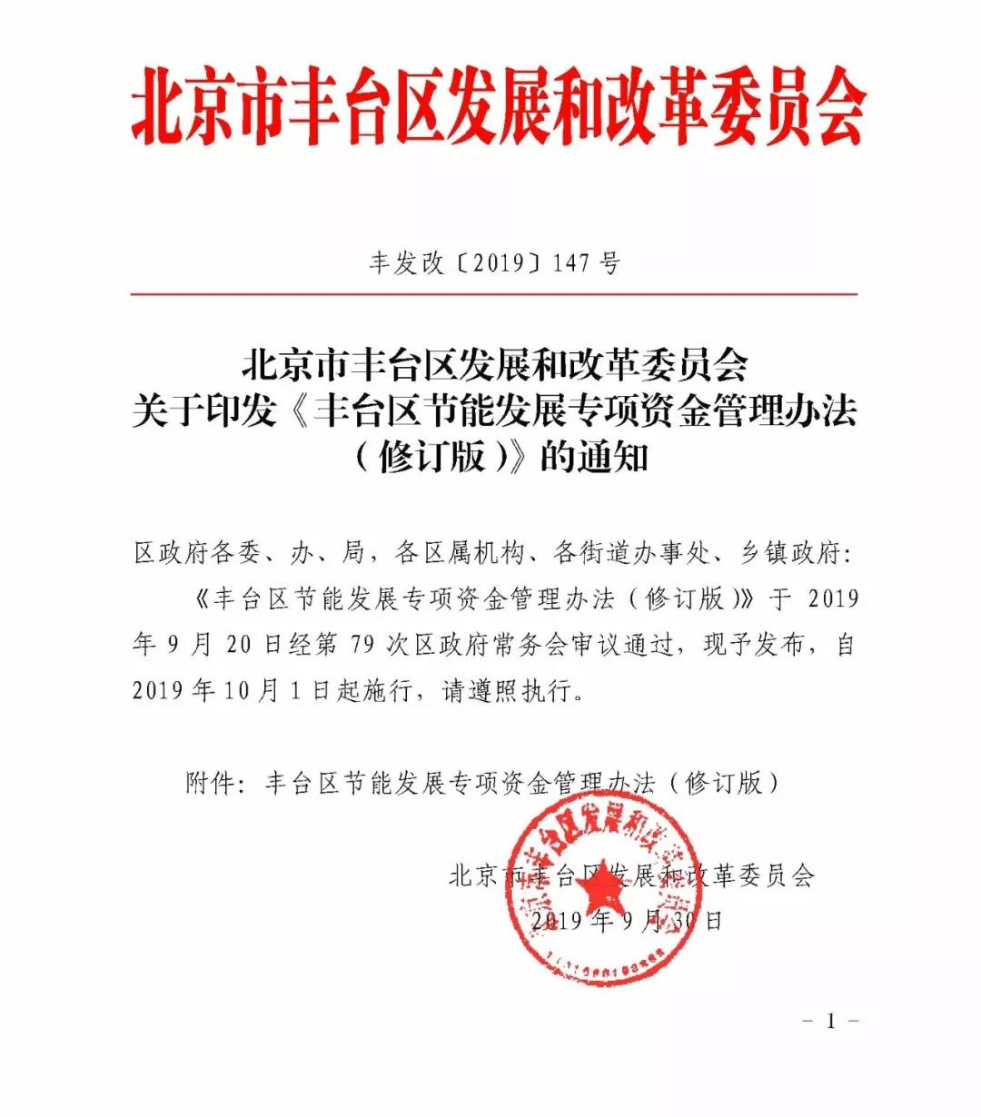 北京市豐臺(tái)區(qū)***發(fā)布關(guān)于印發(fā)《豐臺(tái)區(qū)節(jié)能發(fā)展專項(xiàng)資金管理辦法(修訂版)》的通知。