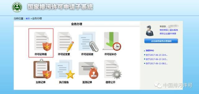 第一步:登錄排污許可申請子系統,進入申請模塊: