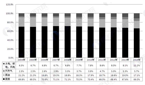 2004-2014年我國能源消費結構(單位:%)