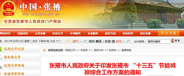 關于張掖市“十三五”節能減排綜合工作方案