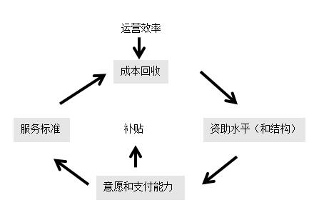 在PPP項(xiàng)目的資費(fèi)設(shè)計中,需要平衡以下目標(biāo):(1)目標(biāo)服務(wù)標(biāo)準(zhǔn)及相關(guān)成本;(2)公眾消費(fèi)者的支付意愿及能力;(3)成本回收方式;(4)社會資本的經(jīng)濟(jì)要求(投資利潤率);(5)對政府補(bǔ)貼的需求及得到的可能性。各因素的正確組合可以通過項(xiàng)目模型的重復(fù)優(yōu)化來確定。資費(fèi)設(shè)計循環(huán)過程如下圖所示: