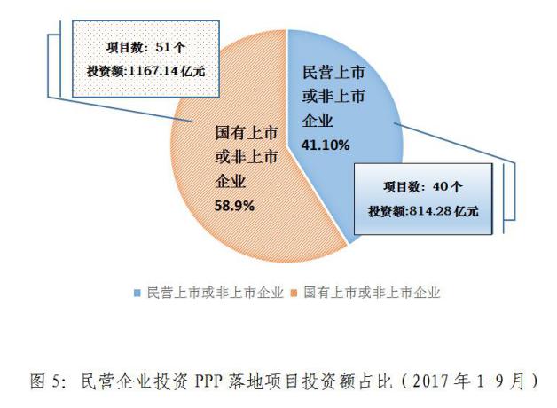 2017年9月,民營(yíng)企業(yè)以聯(lián)合體牽頭方或者單獨(dú)作為社會(huì)資本方落地項(xiàng)目投資額206.95億元。2017年1-9月累計(jì)投資額814.28億元,占41.10%。