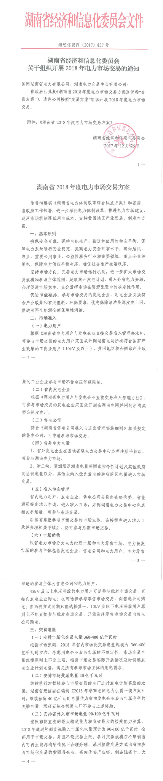 湖南省經信委發布:關于組織開展2018年電力市場交易的通知