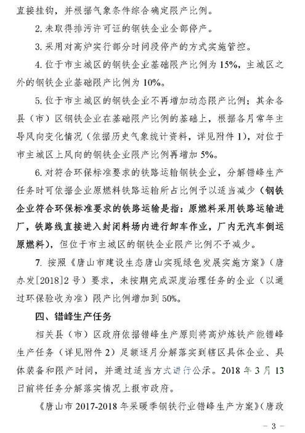 日前,《唐山市鋼鐵行業(yè)2018年非采暖季錯峰生產(chǎn)方案》經(jīng)市政府同意,已正式下發(fā)。方案中明確了錯峰生產(chǎn)依據(jù)和原則,綜合考慮唐山市環(huán)境空氣質(zhì)量現(xiàn)狀、鋼鐵企業(yè)所處區(qū)域和氣象條件,對全市鋼鐵企業(yè)實施非采暖季精準(zhǔn)化、差異化錯峰生產(chǎn)。全文如下: