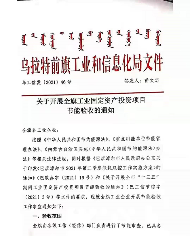 烏拉特前旗:對全旗工業(yè)企業(yè)開展節(jié)能審查驗收,對期限內(nèi)驗收不通過的企業(yè),按能耗“雙控”工作違規(guī)項目有關(guān)規(guī)定執(zhí)行停產(chǎn)整改。
