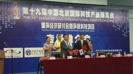 在今天的第十九屆科博會“循環經濟研討會暨環保科技項目專場推介會”上,中科節電董事長郝澤忠先生與上海韓國商會會長鄭喜天先生共同簽署了戰略合作協議,雙方將共同拓展韓國企業的節能減排項目達成戰略合作伙伴。以中科宇杰自主知識產權的智能節電設備為核心,全方位推進在華企韓資企業的整體節能審計,節能改造項目。