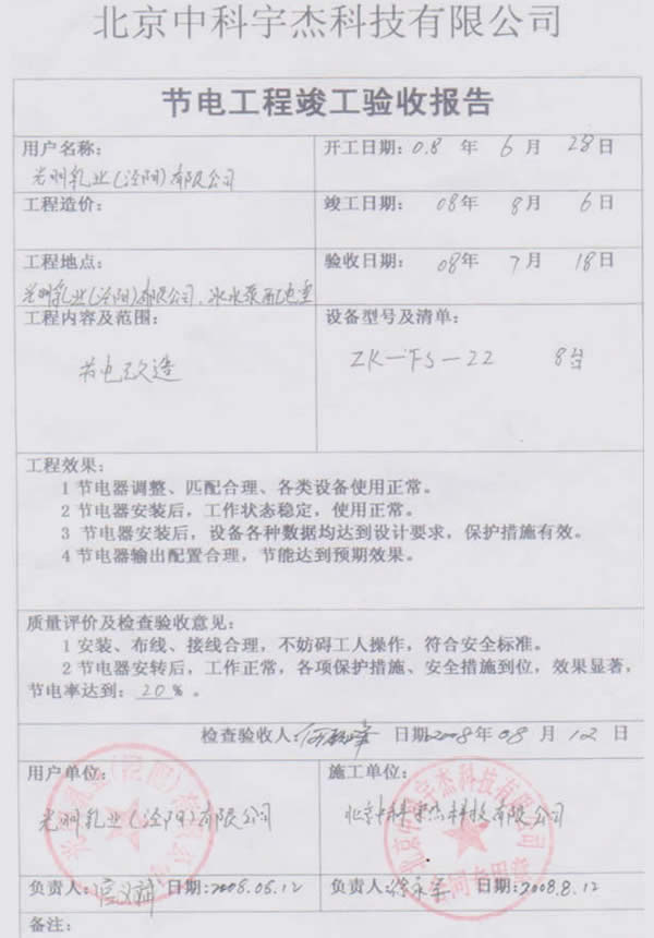 安裝調(diào)試后,從測試報告反映來看,智能水泵節(jié)電系統(tǒng)運行狀況良好,對比安裝前后,平均能耗降低了20%,達到良好的節(jié)電效果,完全不影響泵房的正常運行,為涇陽廠的年度節(jié)能目標的實現(xiàn)奠下堅實的基礎(chǔ)。
